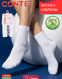 CONTE арт. 24С-3СП 3D SOCKS - 000 - женские короткие (до щиколотки) носки, серии 3D SOCKS. Однотонные (без рисунка). Всесезонные. Изготовленные из мягкой гладкой пряжи хлопка (74%), с добавлением полиамида (24%) для лучшей практичности и эластана (2%) для лучшей сохранности формы. Традиционный материал хлопок отлично дышит, дает комфортную мягкость, способность хорошо впитывать влагу и гарантирует гигиеничное ношение.
