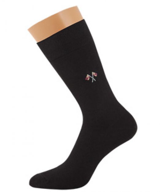 Классические мужские носки из хлопка с небольшим рисунком в виде флажков. Средней длины, с комфортной широкой резинкой.