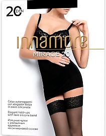 Чулки женские Innamore Mirage 20 Autoreggente - элегантные тонкие чулки с резинкой на силиконовой основе. Плотностью 20 ден. Кружевная резинка-кайма на силиконовой основе для лучшей фиксации и удержания на ноге. Прозрачные, гладкие и шелковистые. Предлагаются в размерах: 1/2 = S/M и 3/4 = M/L.