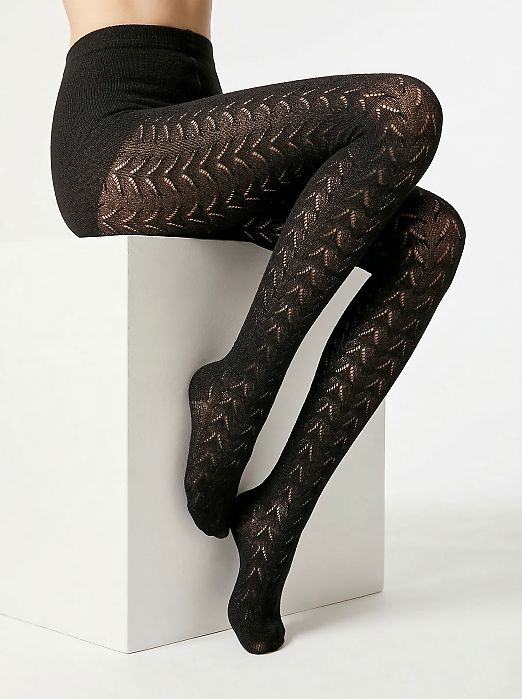 Колготки с классической посадкой (на талии). С ажурной вязкой от низа до торса. Ширина пояса-резинки - 3.0 см. С гигиенической ластовицей из хлопка. С комфортным плоским соединительным швом.