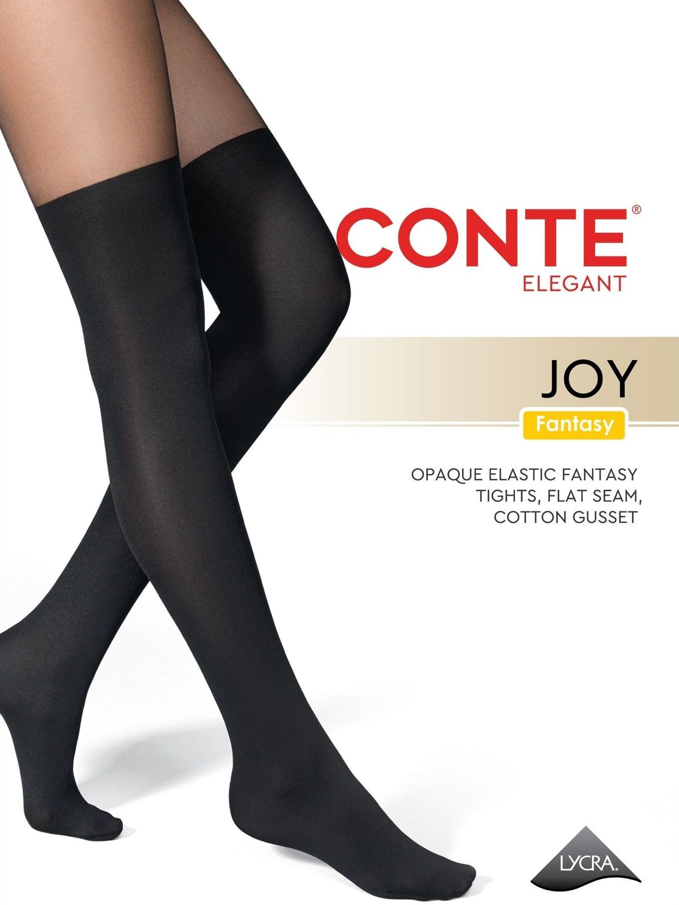 CONTE арт. 24С-187СП JOY 60 - эластичные плотные (60 DEN) элегантные колготки, серии FANTASY (фантазия). Изготовленные из микроволокна (микрофибра). Имитируют плотные (непрозрачные) ботфорты (получулки). И прозрачной верхней частью. С мягким бархатистым эффектом.