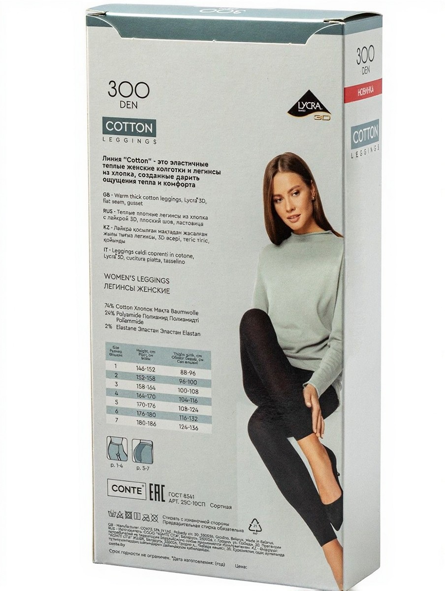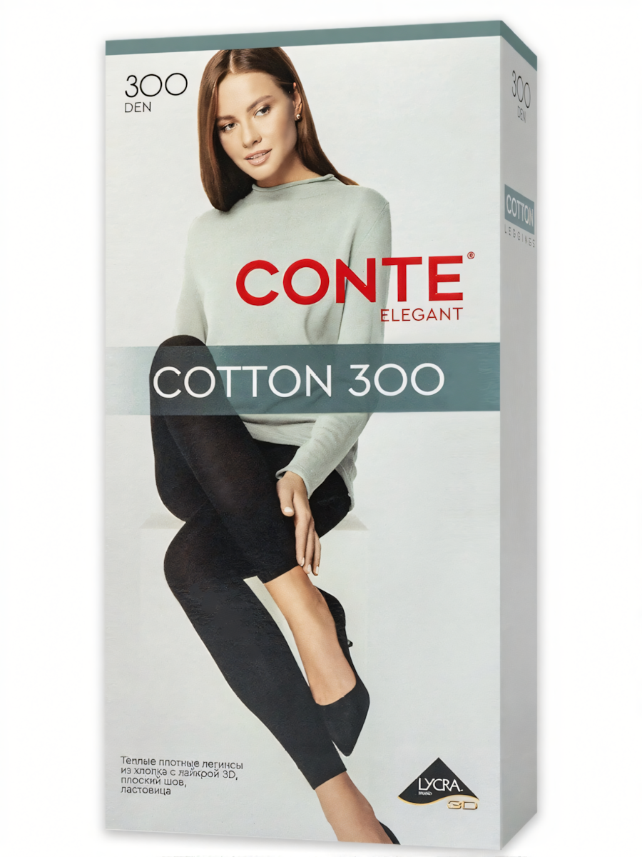 Легинсы женские CONTE COTTON 300 Leggings — очень плотные и теплые леггинсы из серии COTTON COMFORT. Плотностью 300 ден. Модель выполнена с высоким содержанием хлопка и равномерной гладкой вязкой благодаря 3D-технологии плетения нити. Рассчитаны на сезон осень–зима: полностью непрозрачные, плотно сидят по фигуре, помогают удерживать тепло, при этом остаются мягкими, комфортными и гигиеничными в носке.