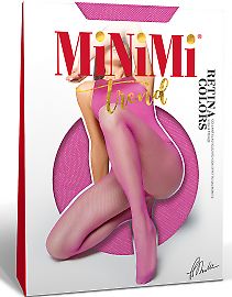 Minimi Retina Grande - эластичные колготки в крупную сетку, серии TREND (мода). В растянутом виде сетка с размером ячейки около 2.0 на 2.0 см. Для ношения (преимущественно) теплой весной и летом. Колготки в крупную сетку - модная классика на все времена. В чёрном цвете (NERO) - очень контрастные и выразительные, более вызывающие в красном цвете (ROSSO). Могут использоваться в качестве дополнения к романтическому или сексуальному образу.