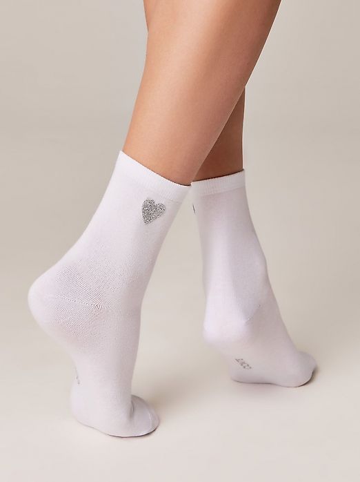 CONTE арт. 22С-40СП CLASSIC - 427 - женские носки классической длины, серии CLASSIC. С рисунком из люрекса в верхней части паголенка - "HEART" (в виде символа сердца). Всесезонные. Изготовленные из пряжи хлопка (72%), с добавлением полиамида (26%) для лучшей практичности и эластана (2%) для лучшей сохранности формы. Традиционный материал хлопок отлично дышит, дает комфортную мягкость, способность хорошо впитывать влагу и гарантирует гигиеничное ношение.
