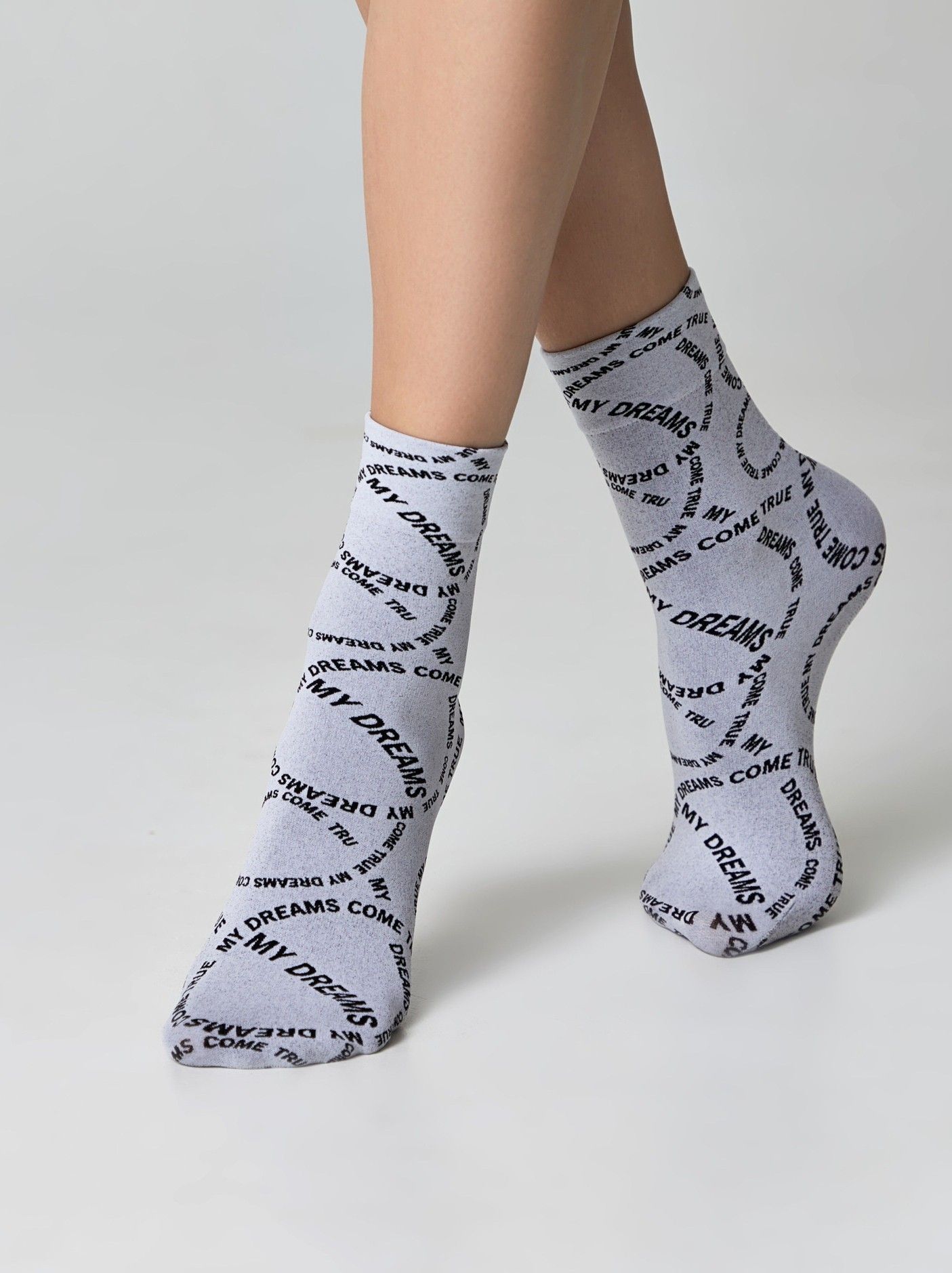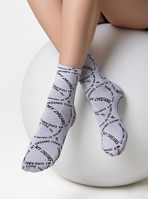 CONTE арт. 23С-80СП FANTASY 70 - женские носки средней длины, серии FANTASY. С оригинальным контрастным вывязанном рисунком, состоящим из стильной повторяющейся надписи - "MY DREAMS". Изготовленные из мягкого комфортного микроволокна полиамид (85%) плотностью 70 DEN, с добавлением эластана (15%) для лучшей сохранности формы. Приятный мягкий дышащий материал микроволокна, дает комфортное ношение. Оригинальный цветной принт поможет подчеркнуть вашу индивидуальность.