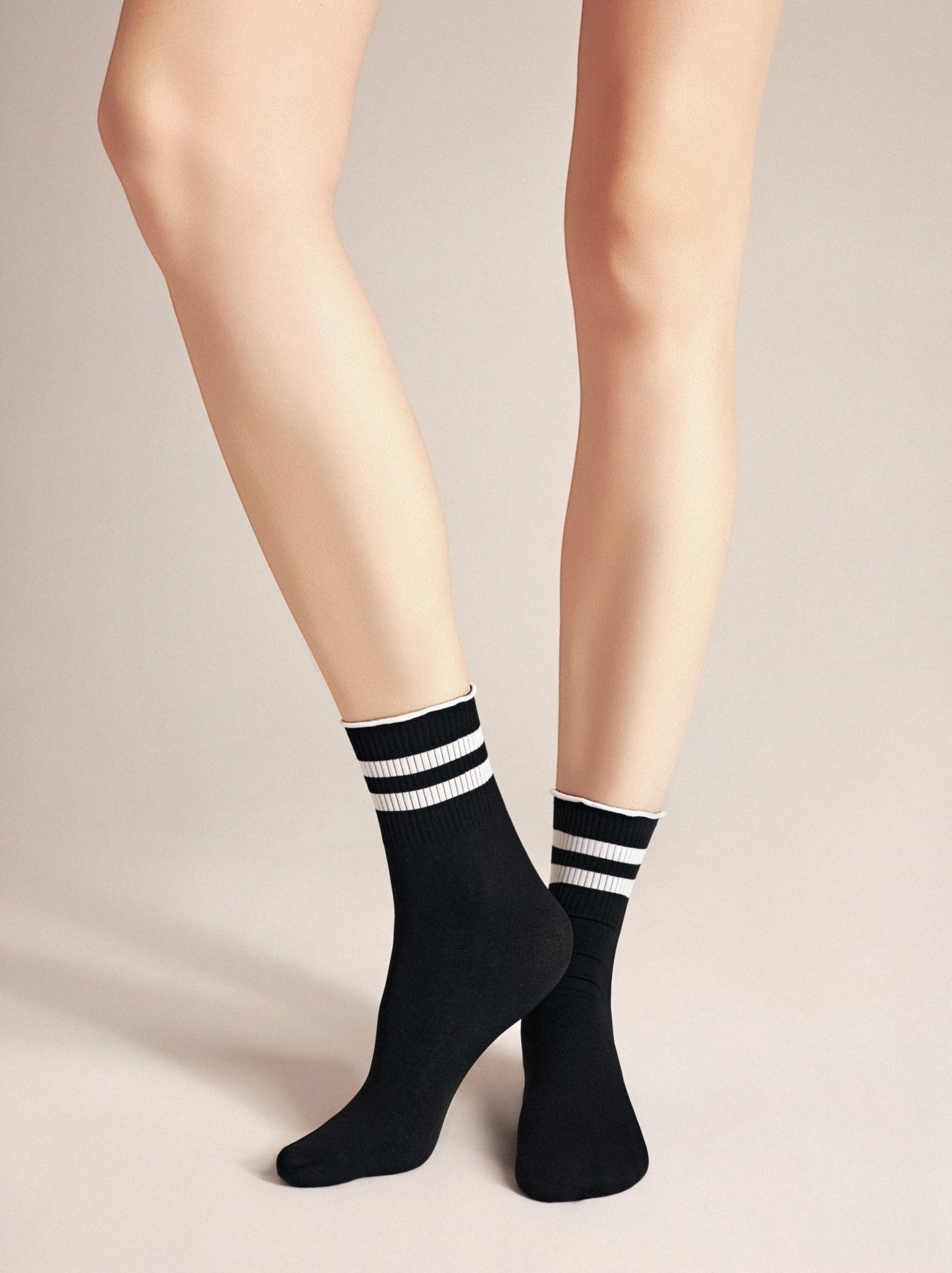 CONTE арт. 24С-7СП FANTASY 50 - женские удлиненные носки, серии FANTASY. С оригинальной контрастной отделкой в черно-белом цвете. Черного цвета носки с белыми акцентами-полосками в верхней части паголенка. С комфортной мягкой резинкой. Изготовленные из мягкого комфортного микроволокна полиамида (86%) и эластана (14%) для лучшей сохранности формы. Приятный мягкий дышащий материал микроволокна, дает комфортное ношение. Оригинальный дизайн поможет подчеркнуть вашу индивидуальность.