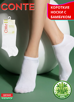 CONTE арт. 20С-96СП BAMBOO - 000 - женские носки ультракороткие (ниже щиколотки), серии BAMBOO. Однотонные (без рисунка). Всесезонные. Изготовленные из пряжи волокна бамбук (68%), с добавлением полиамида (29%) для лучшей практичности и эластана (3%) для лучшей сохранности формы. Бамбук - искусственный материал натурального происхождения, получаемый путем регенерации целлюлозы, выработанной из растения бамбука. Носки из волокна БАМБУК обладают очень высоким комфортом ношения (приятной мягкостью) и отличной гигиеничностью, но уступают в практичности традиционным носкам из хлопка.