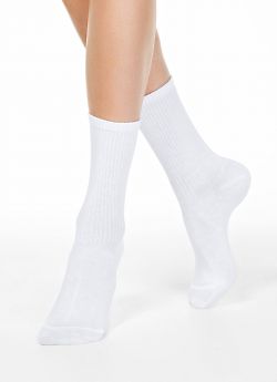 CONTE арт. 19С-65СП ACTIVE - 157 - женские носки классической длины, серии ACTIVE. С контрастными полосками в верхней части паголенка. В спортивном стиле - спорт-шик. Со свободной резинкой (без борта). Всесезонные. Изготовленные из пряжи хлопка (58%), с добавлением полиамида (35%), вискоза (3%), эластана (3%) и полиэстера (1%). Традиционный материал хлопок отлично дышит, дает комфортную мягкость, способность хорошо впитывать влагу и гарантирует гигиеничное ношение.