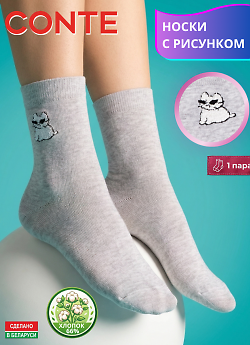 CONTE арт. 17С-183СП CLASSIC - 252 - женские носки классической длины, серии CLASSIC. С оригинальным рисунком - "lazy puppy". Всесезонные. Изготовленные из меланжевой пряжи хлопка (68%), с добавлением полиамида (30%) для лучшей практичности и эластана (2%) для лучшей сохранности формы. Традиционный материал хлопок отлично дышит, дает комфортную мягкость, способность хорошо впитывать влагу и гарантирует гигиеничное ношение.