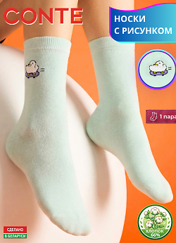 CONTE арт. 24С-151СП CLASSIC - 678 - женские носки классической длины, серии CLASSIC. В цвете - светло-бледно-бирюзовый, с маленьким оригинальным рисунком в верхней части паголенка. Всесезонные. Изготовленные из пряжи хлопка (66%), с добавлением полиамида (28%) для лучшей практичности, полиэстера (4%) для создания оригинального рисунка и эластана (2%) для лучшей сохранности формы. Традиционный материал хлопок отлично дышит, дает комфортную мягкость, способность хорошо впитывать влагу и гарантирует гигиеничное ношение в любое время года.