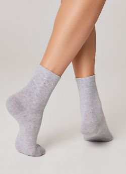 CONTE арт. 24С-151СП CLASSIC - 679 - женские носки классической длины, серии CLASSIC. В цвете - серый меланж, с маленьким оригинальным рисунком в верхней части паголенка. Всесезонные. Изготовленные из пряжи хлопка (66%), с добавлением полиамида (28%) для лучшей практичности, полиэстера (4%) для создания оригинального рисунка и эластана (2%) для лучшей сохранности формы. Традиционный материал хлопок отлично дышит, дает комфортную мягкость, способность хорошо впитывать влагу и гарантирует гигиеничное ношение в любое время года.