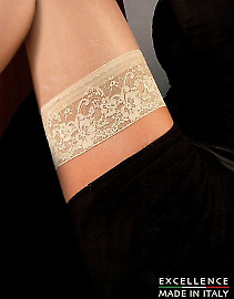 Обворожительные чулки под пояс, тонкие и прозрачные. Великолепная резинка шириной 10 сантиметров с драгоценным кружевным узором.