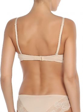 Выполнен из эластичной мягкой микрофибры. Боковые части укреплены упругими вертикальными пластинами. Внутренняя боковая часть дублирована силиконовой лентой для комфортного ношения без бретелей. Бретели съёмные, регулируются по длине.