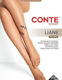 Женские фантазийные колготки с рисунком тату Conte Liane 20 — природная грация и стиль. Это изысканный аксессуар для тех, кто ищет оригинальные детали. Главная особенность модели - контрастный рисунок в виде двух переплетающихся веточек лианы на голени одной ноги. Эффект татуировки придает образу загадочность и элегантность, делая ваши ножки центром внимания.