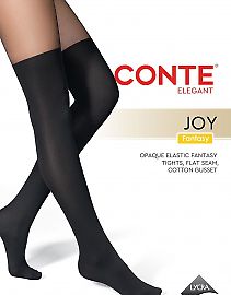 CONTE арт. 24С-187СП JOY 60 - эластичные плотные (60 DEN) элегантные колготки, серии FANTASY (фантазия). Изготовленные из микроволокна (микрофибра). Имитируют плотные (непрозрачные) ботфорты (получулки). И прозрачной верхней частью. С мягким бархатистым эффектом. конструкция: Колготки с классической посадкой (на талии). Комбинированные по плотности, более плотные в области чулка (60 DEN) и прозрачные в верхней части бедра (30 DEN). Ширина пояса-резинки - 3.0 см. С гигиенической ластовицей из хлопка. С комфортным плоским соединительным швом. Не формованные. технологии и особенности: MICROFIBRA - пряжа состоящая из множества ультратонких полиамидных волокон, создает матовый (без блеска) эффект, придает изделию мягкость и бархатистость, улучшает практичность изделия.