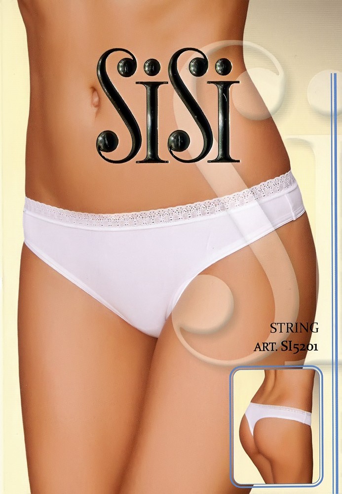 Женские трусики - стринг из хлопка и эластана. С заниженной талией и узкой боковой частью. Украшены кружевом.